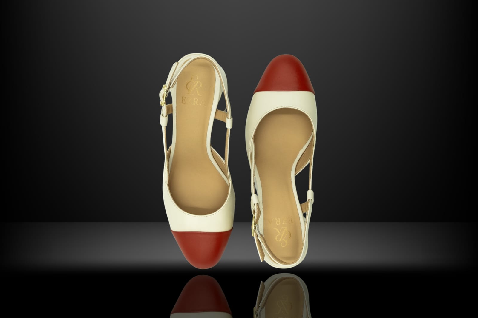 Step into bold refinement with the Ezra Lux " Bianca Rosso " Two- Tone Elegance - a sophisticated statement of timeless Italian flair. This open-back block-heel sandal feature a striking color contrast between deep red and soft ivory, crafted from premium genuine leather for a sleek, polished silhouette.